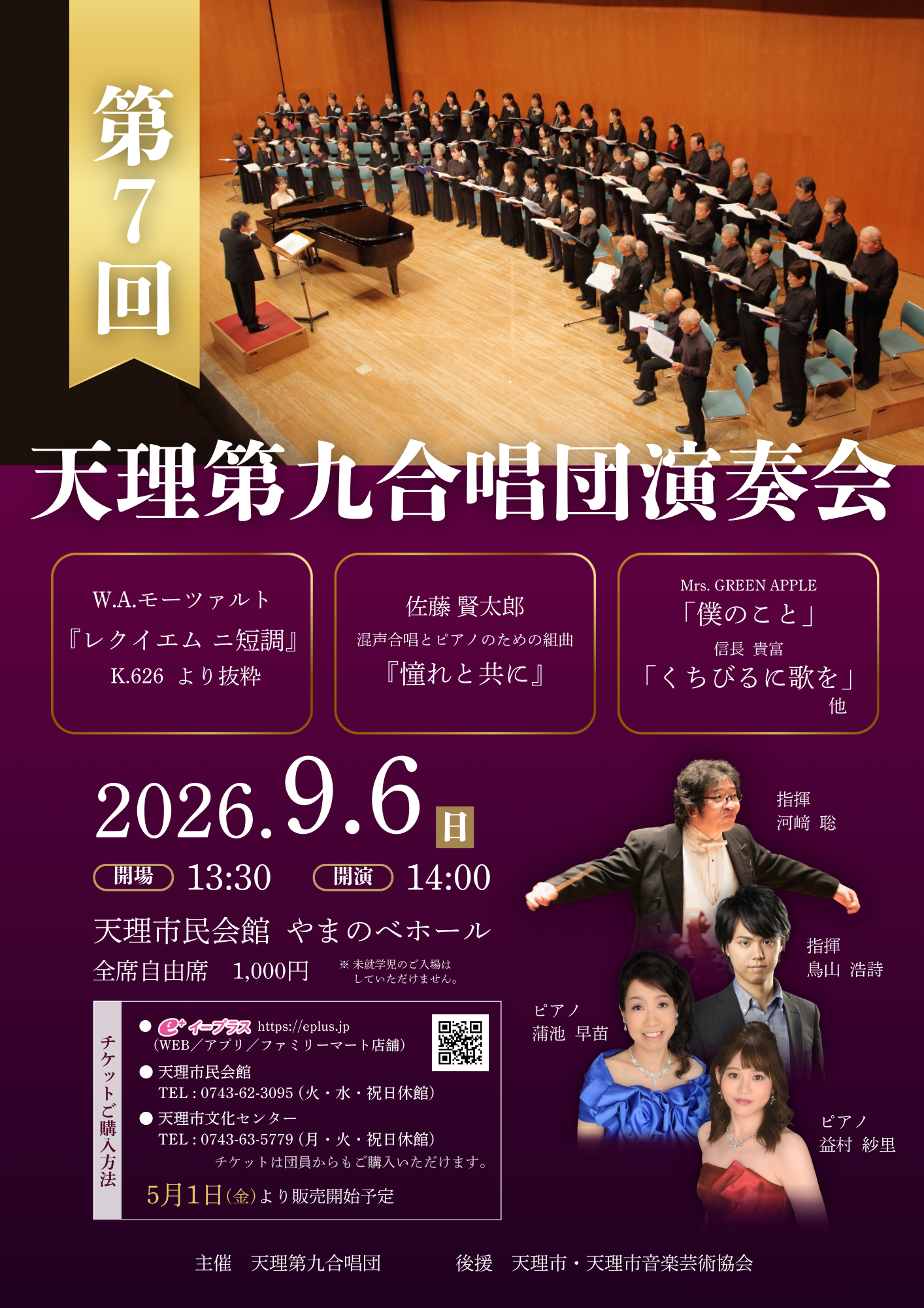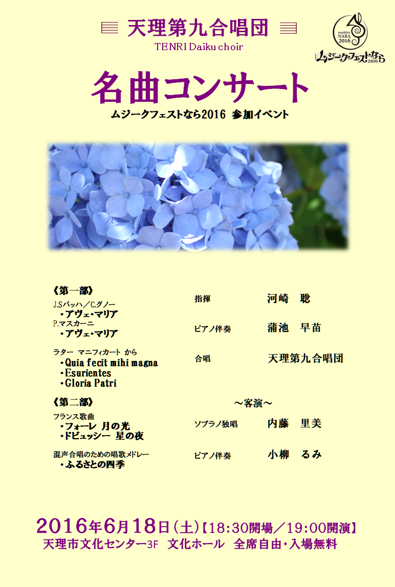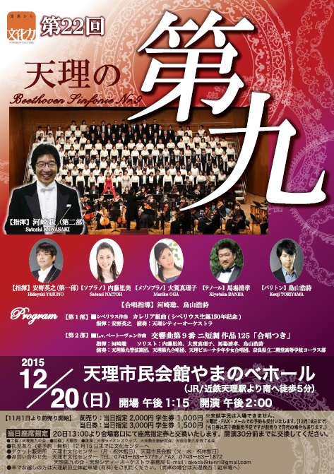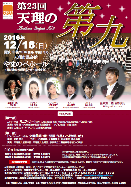今回は地元奈良県を中心に活躍されている奈良フィルハーモニー管弦楽団様に共演頂き、美しいオーケストラの響きのもと歌うことができとても嬉しく思います。当団がベートーヴェンの第九以外の作品に取り組むようになってから10年目の節目にふさわしい演奏会となりました。